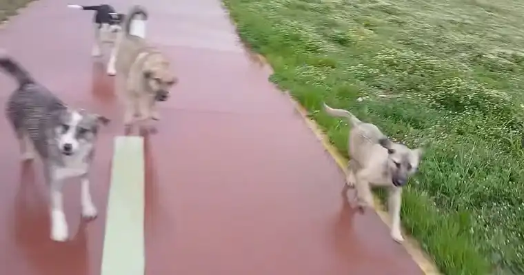 Велосипедската патека на кејот на реката Вардар, која треба да биде зона за рекреација и мирен транспорт, утрово се претворила во сцена од хорор филм за скопјанката Ирена Нелковски. Додека со својот велосипед се упатувала кон работното место, таа била опколена и нападната од огромна глутница кучиња.